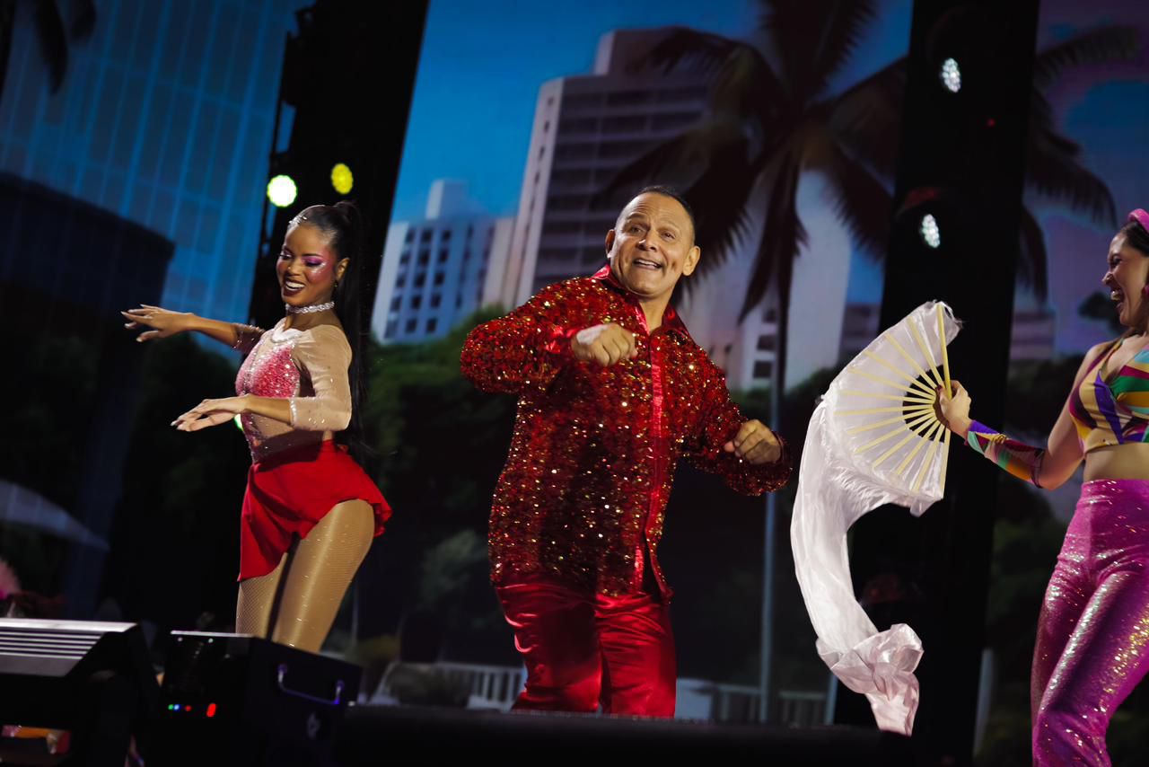 Más de 500 bailarines brillaron en una puesta en escena titulada ‘Aquí Suena’, que recorrió las décadas musicales que han marcado la historia cultural de la ciudad. La noche fue un viaje sonoro y visual que conectó a los asistentes con la tradición, reafirmando que el Carnaval suena a fiesta, a alegría, a terapia desde los picós y a voces que invitan al goce y a herencia cultural.